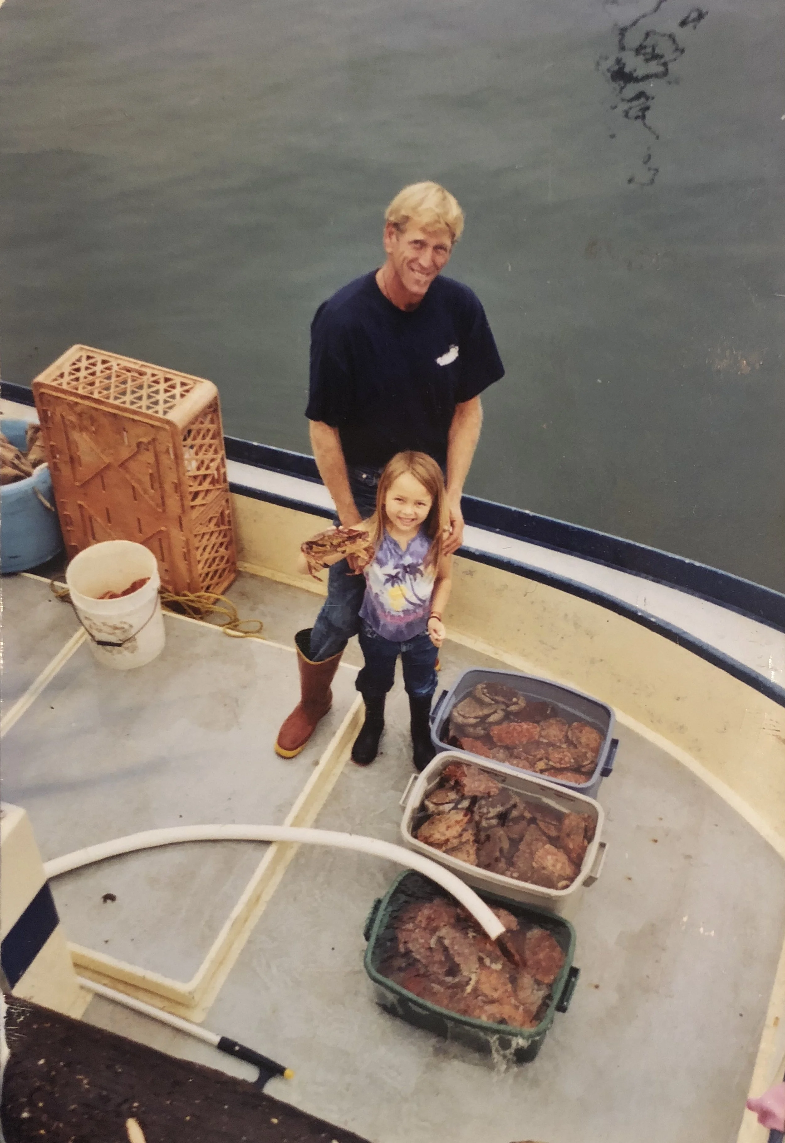 Ava Schulenberg grew up in Santa Barbara where she spent most of her childhood in the harbor spending time with the commercial fishing community. Her dad, Eric Schulenberg, was part of the original abalone/urchin diving fleet back in the “Bluewater Goldrush” days, and he later continued to fish for lobster and crab as well. Her first job was working the Saturday Market with her dad (pictured left), where she learned to appreciate the importance of supporting local food production.
